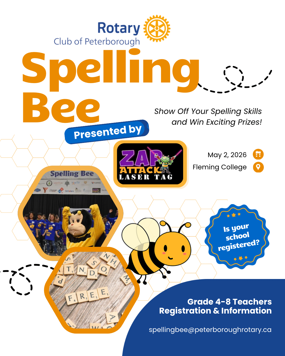 🐝 The 2026 Rotary Spelling Bee, presented by Zap Attack is happening on May 2, 2026!